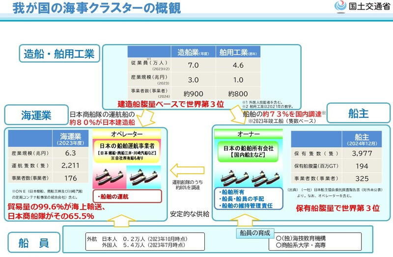 さらに触れておきたいテーマとして「人材」があります。造船業に従事する就労者は約7~8万人で推移していますが、日本人だけでみると10~11年頃が最大で約8万5000人。以降25年までで2割から3割減少しています。この部分を外国人材で補っているわけですが少子化に歯止めがかからない中、この人材不足への対応も大きな課題といえます。